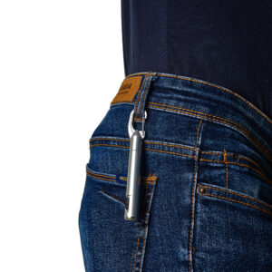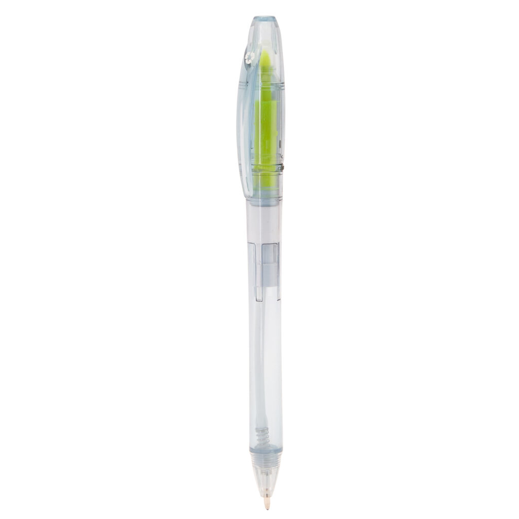 Pen/marker with blue transparent body and marker available in three fluor colours.