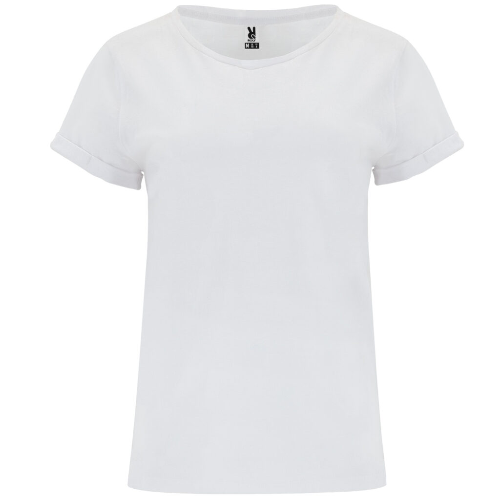 Short sleeved t-shirt for women. Crew neck in the same fabric and covered seams to tone. Fold in sleeves reinforced in four points.
