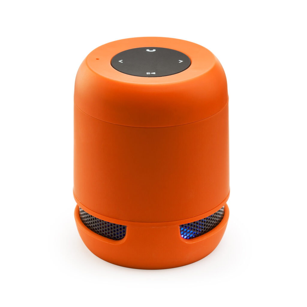 ABS wireless speaker made with soft touch finish. Bluetooth 3.0. Power 3W. Hands-free function Rechargeable battery. Cable included. Designed box.