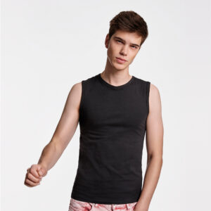 Tank top with wide armholes. Swimming style in back and rounded in hems.