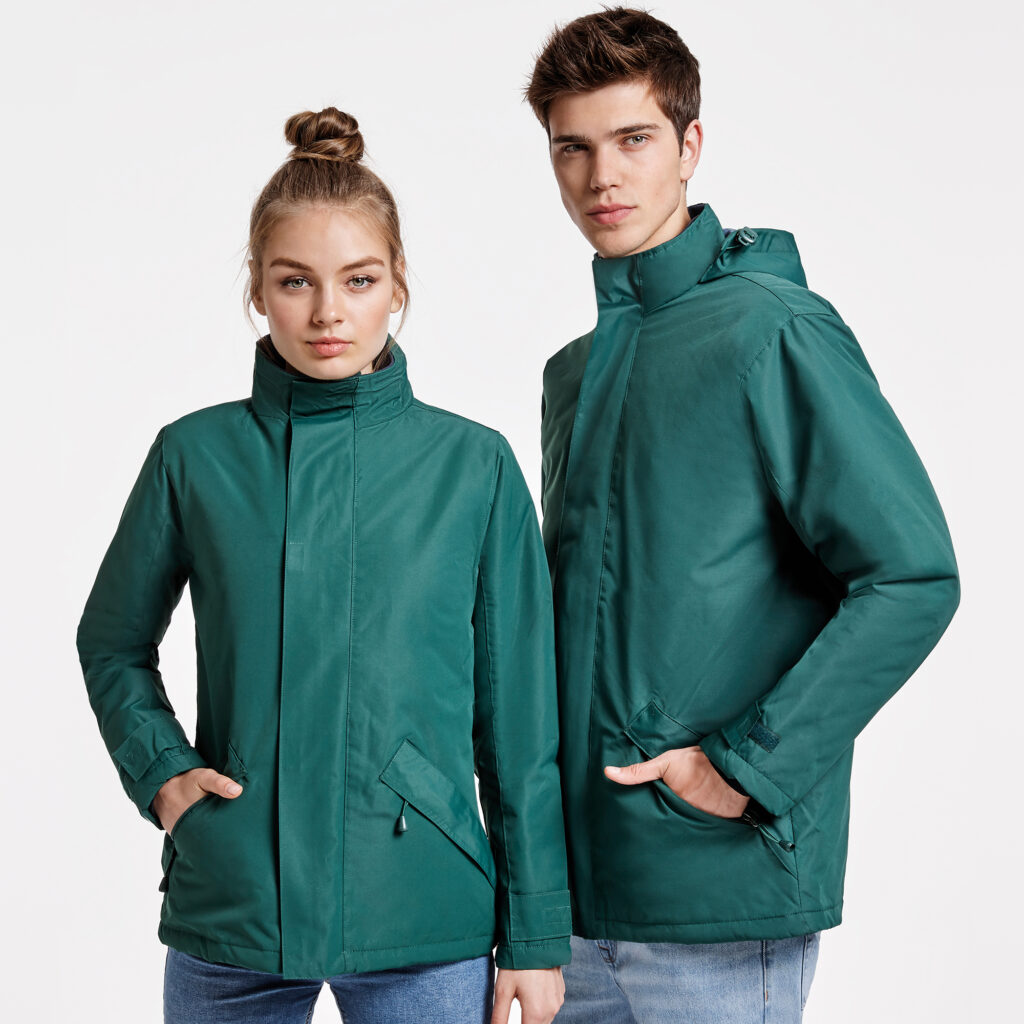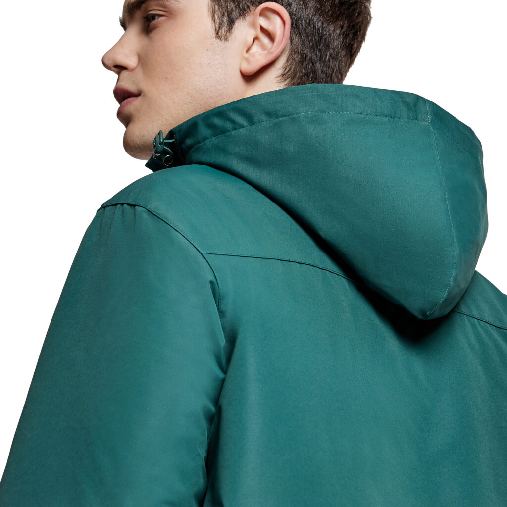 1.- Folded and removable hood with velcro fastenings.