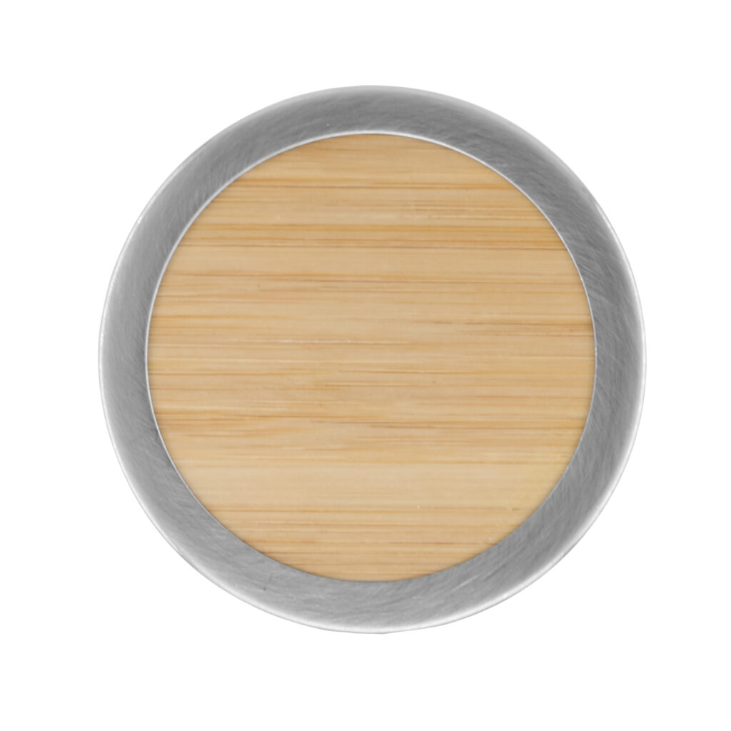 Double-wall 304 stainless steel thermos with removable interior filter. Exterior wall in natural bamboo. 500 ml capacity.