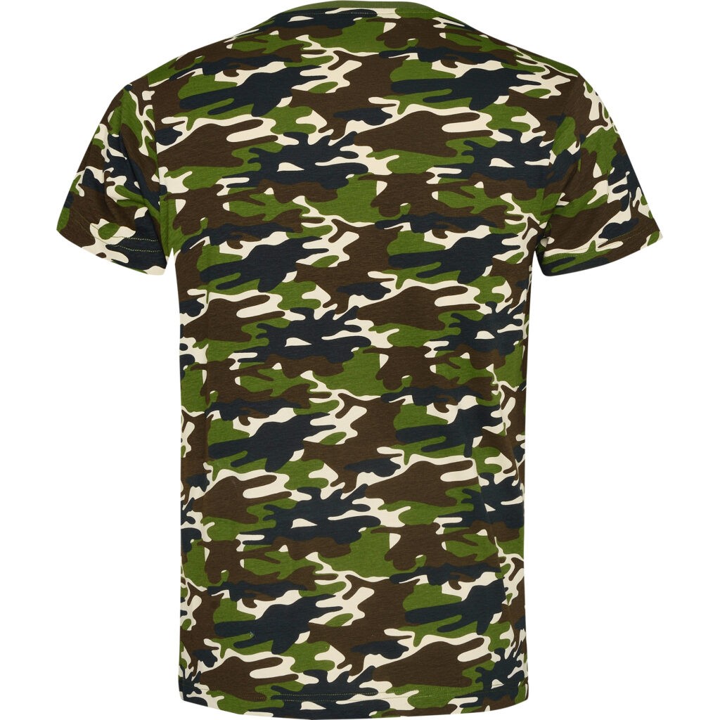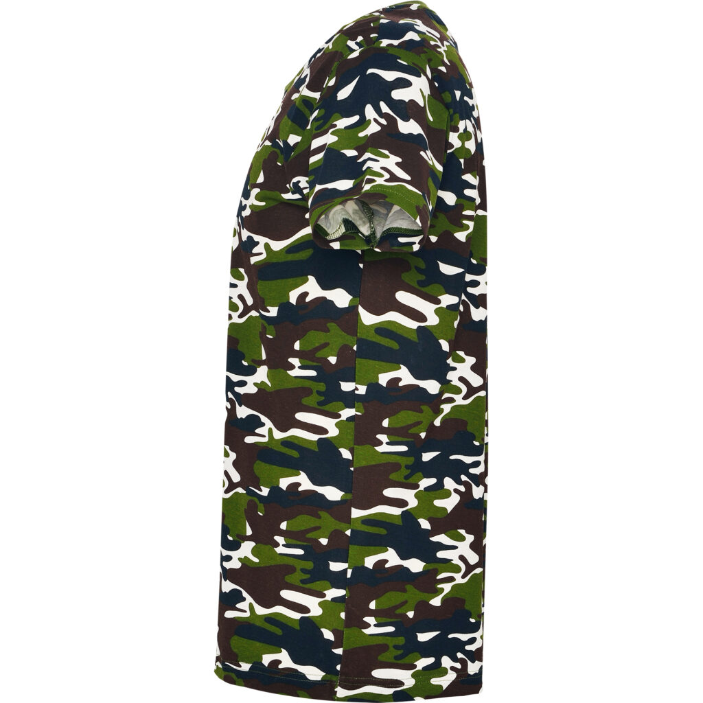 Short sleeve t-shirt, camouflage printing and crew neck. Reinforced 4 layers covered seams in neck and shoulders. Side seams.