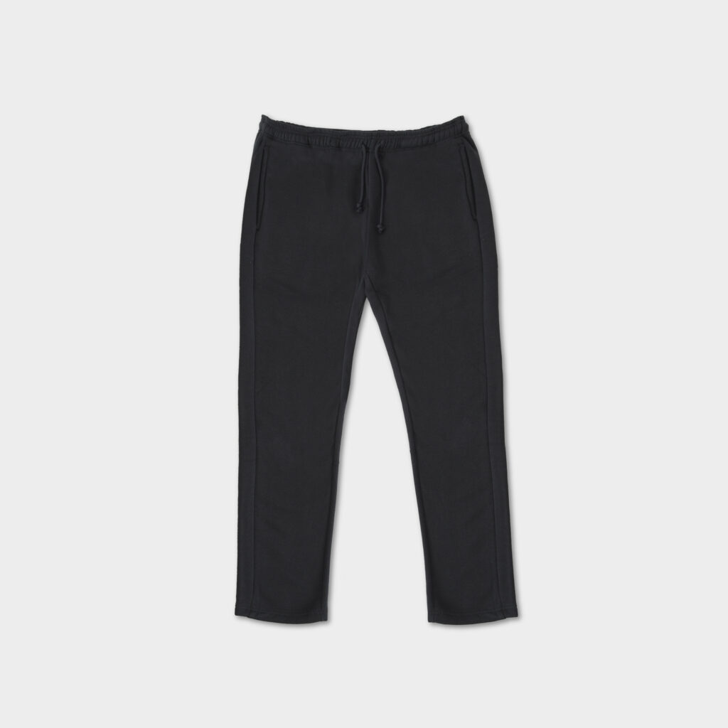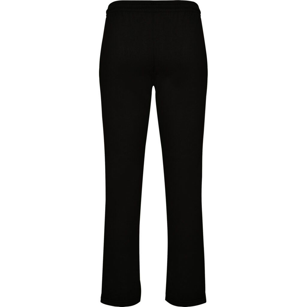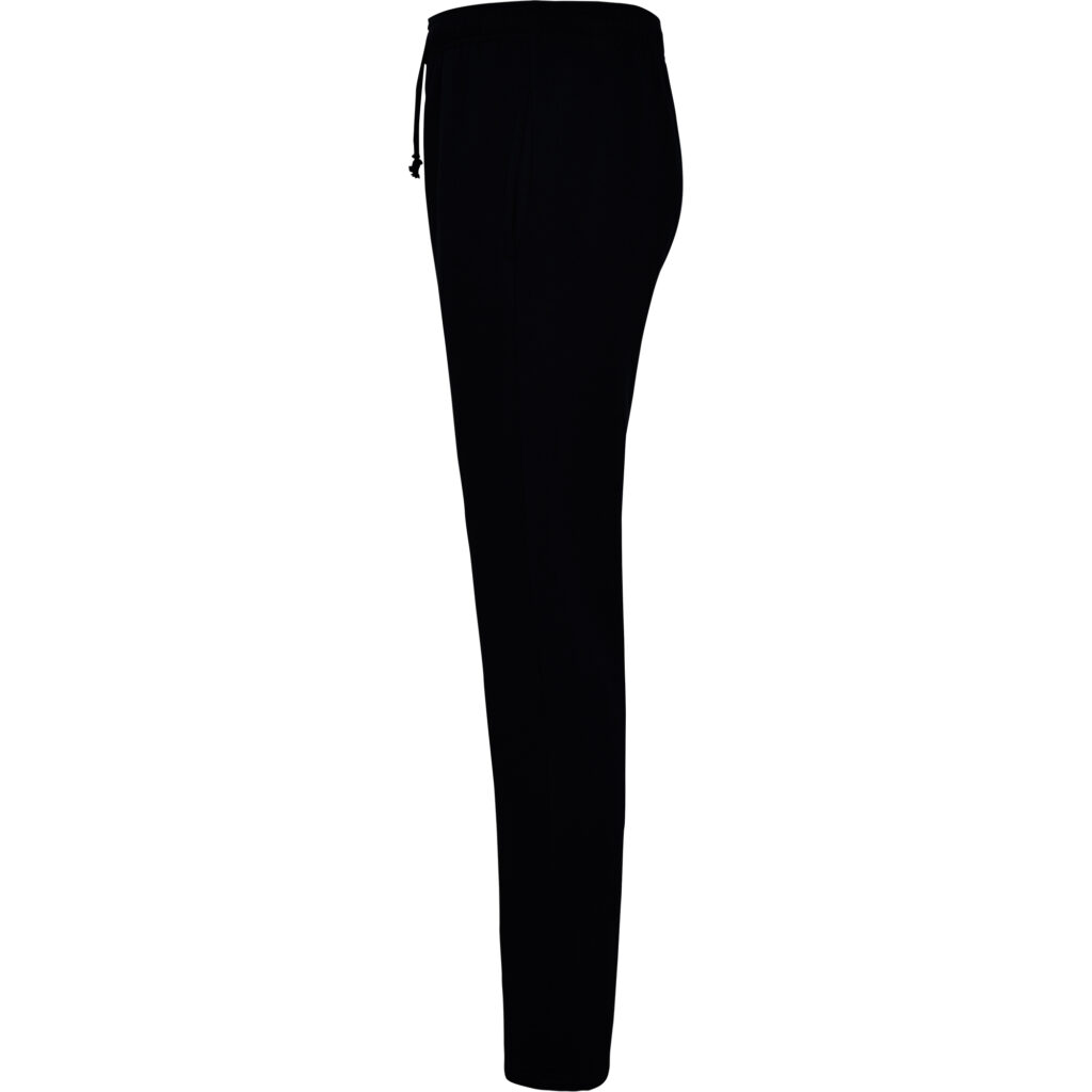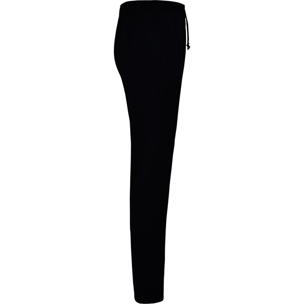 Straight cut trousers with two side pockets and adjustable elastic waist and drawcord.