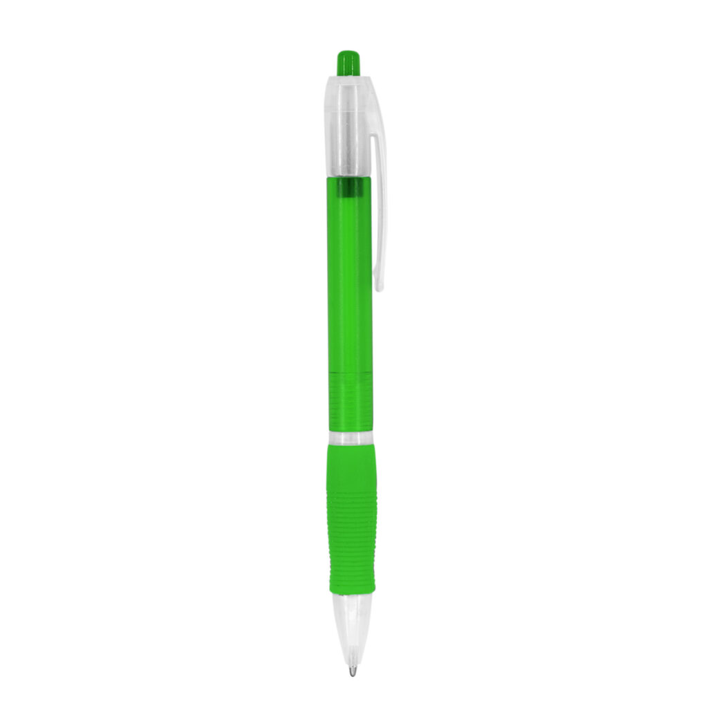 Push ball pen in translucent finish and soft matching grip. Blue ink.