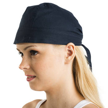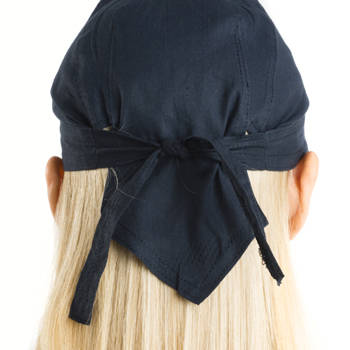 Modern cap bandana tied on back.