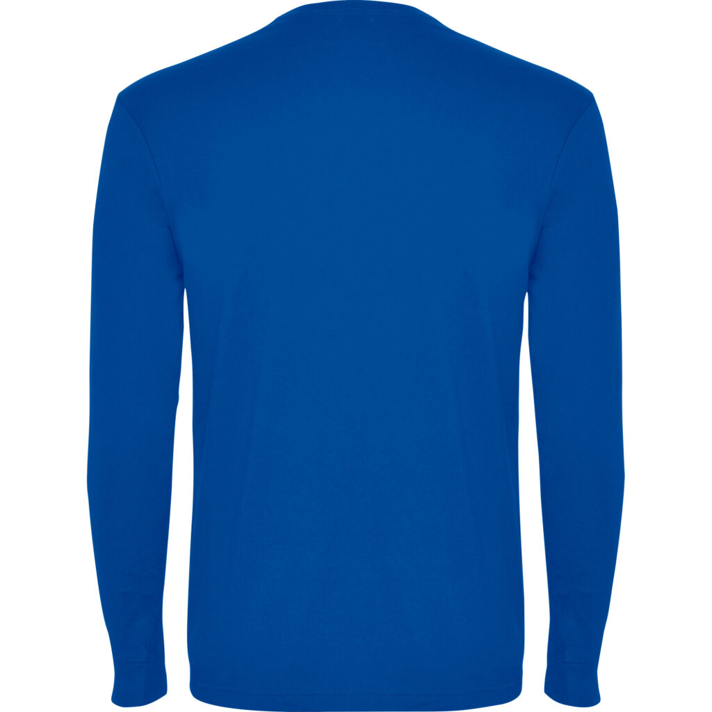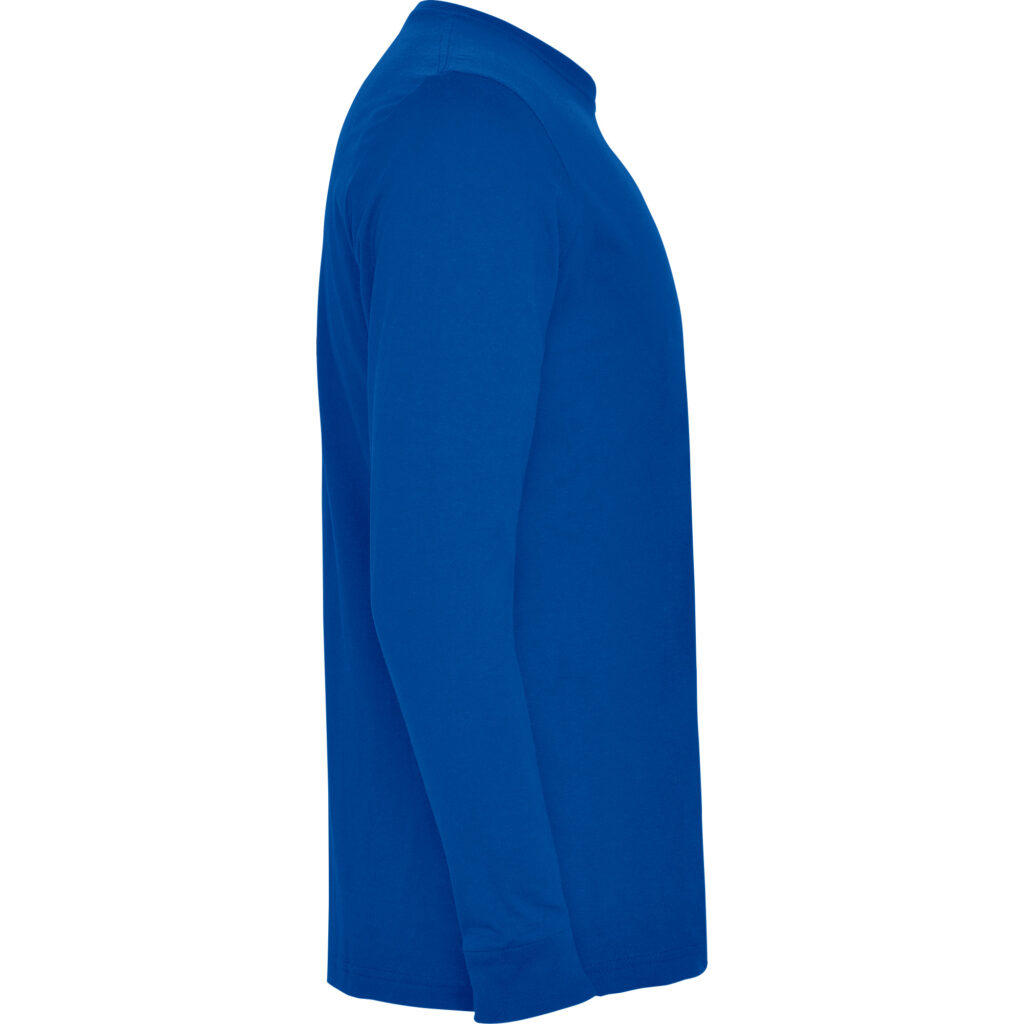 Long sleeve t-shirt, tubular fabric, with 4 layer collar and cuffs 1×1 rib. Reinforced covered seams in collar and shoulders.